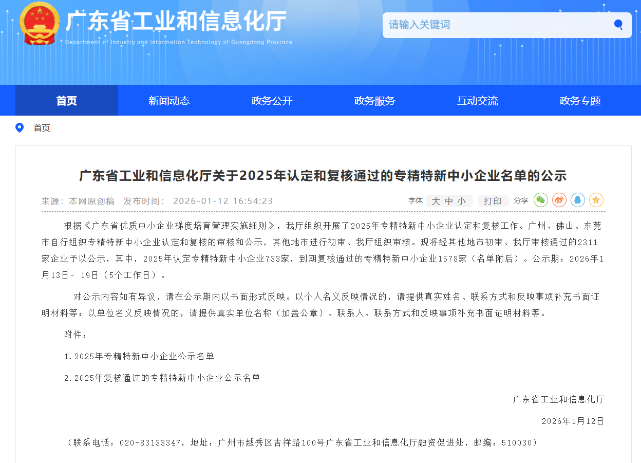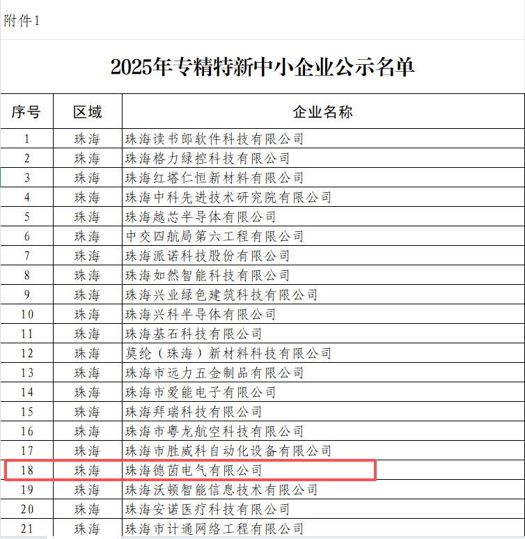 近日,广东省工业和信息化厅正式公布省级“专精特新”中小企业认定名单,珠海德茵电气有限公司凭借在电力物联网监测数据管理以及地质灾害监测领域的深厚技术积累、持续的创新研发与卓越的市场表现,成功通过认定,荣获“专精特新”中小企业称号!